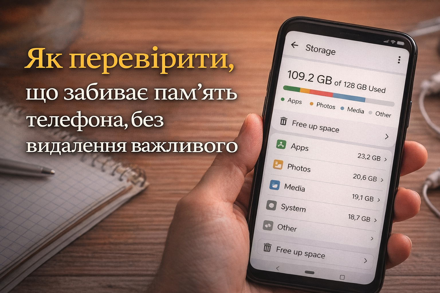 Проблема майже ніколи не в тому, що “в телефоні забагато всього”, а в тому, що ви не бачите, хто саме забрав гігабайти.