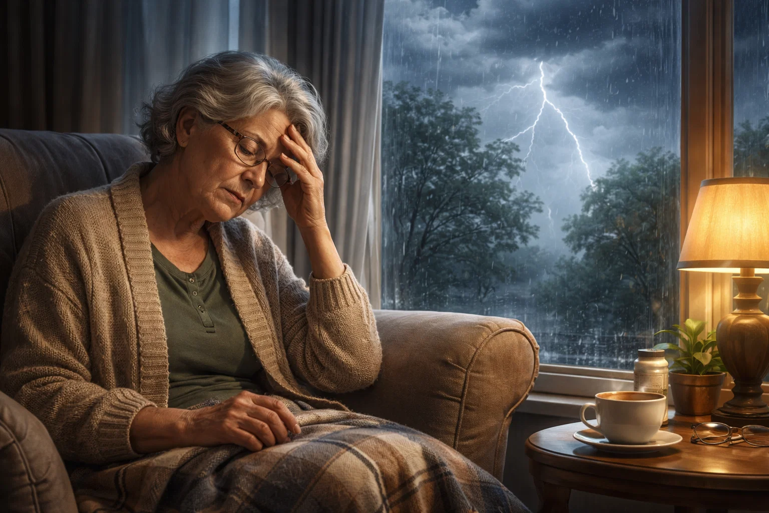 Якщо це мігрень, біль часто пульсує. Може дратувати світло й звук. Іноді нудить. Погіршення “перед дощем” багато хто впізнає саме так.